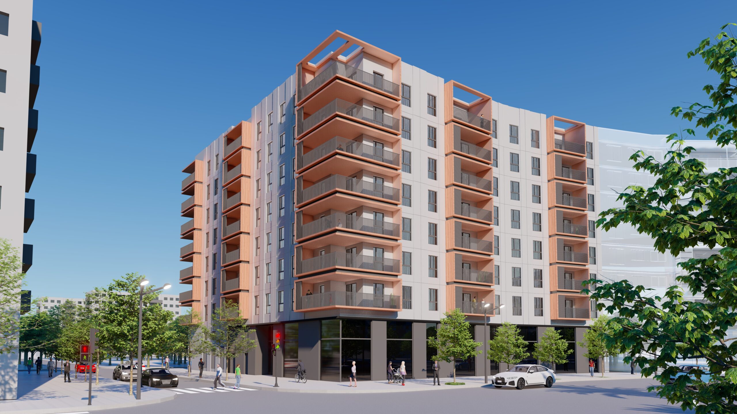 Nou Safranar II es un residencial de siete plantas con magníficas calidades que alberga viviendas de 1, 2 y 3 habitaciones y áticos con grandes terrazas proyectadas pensando en la máxima calidad y confort para las personas que la habiten aportando la mayor sensación de amplitud posible.