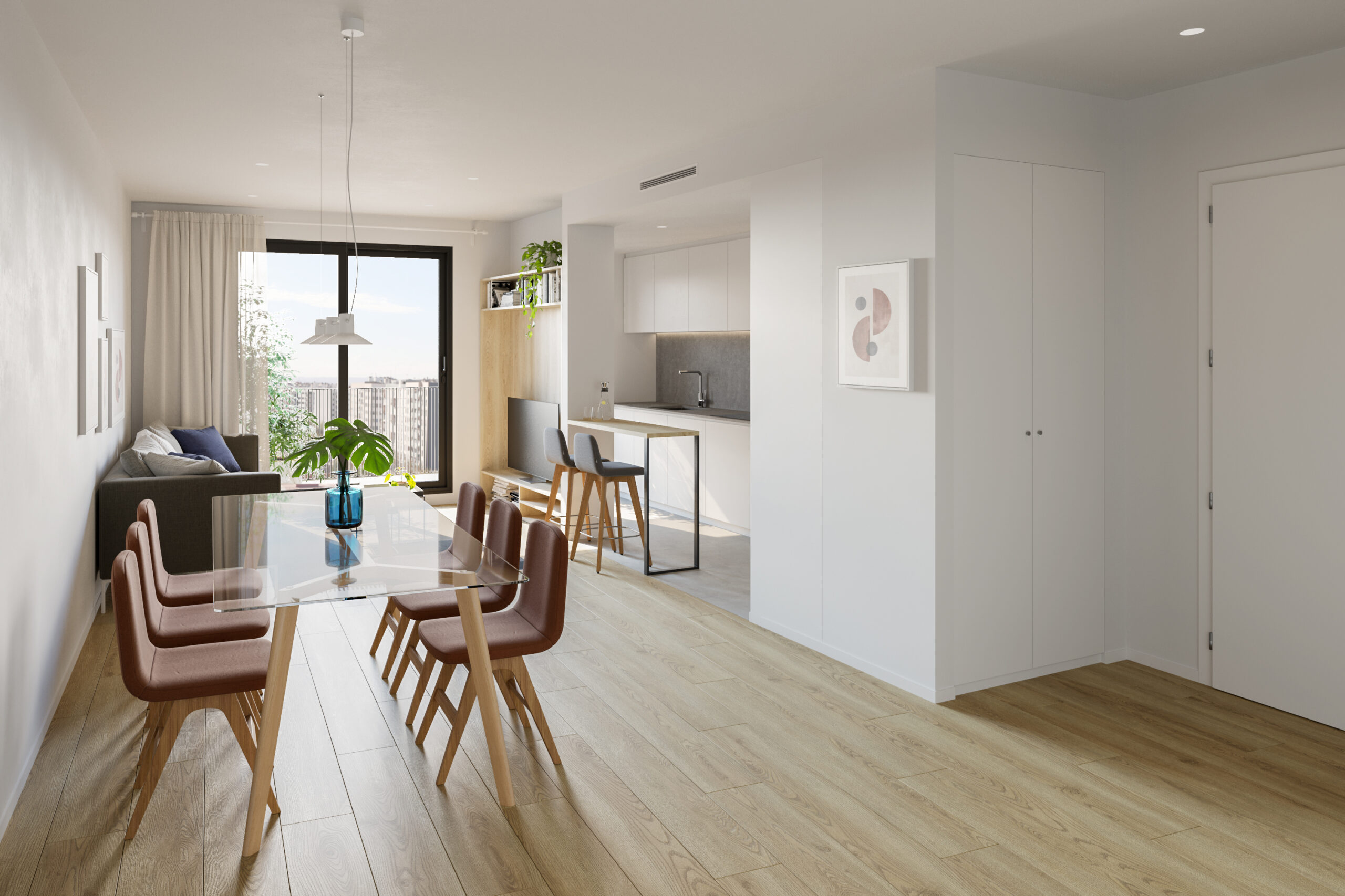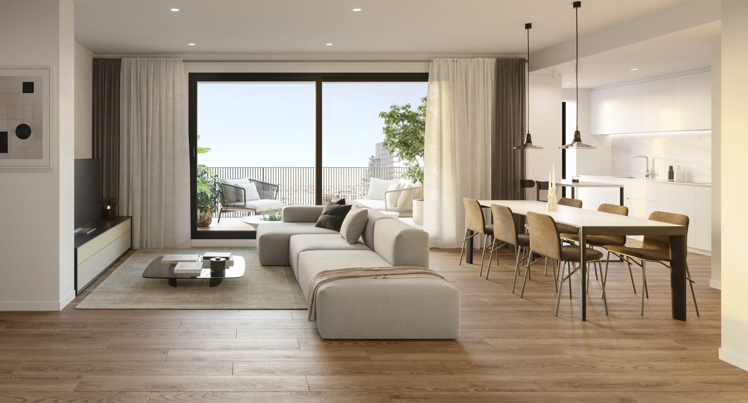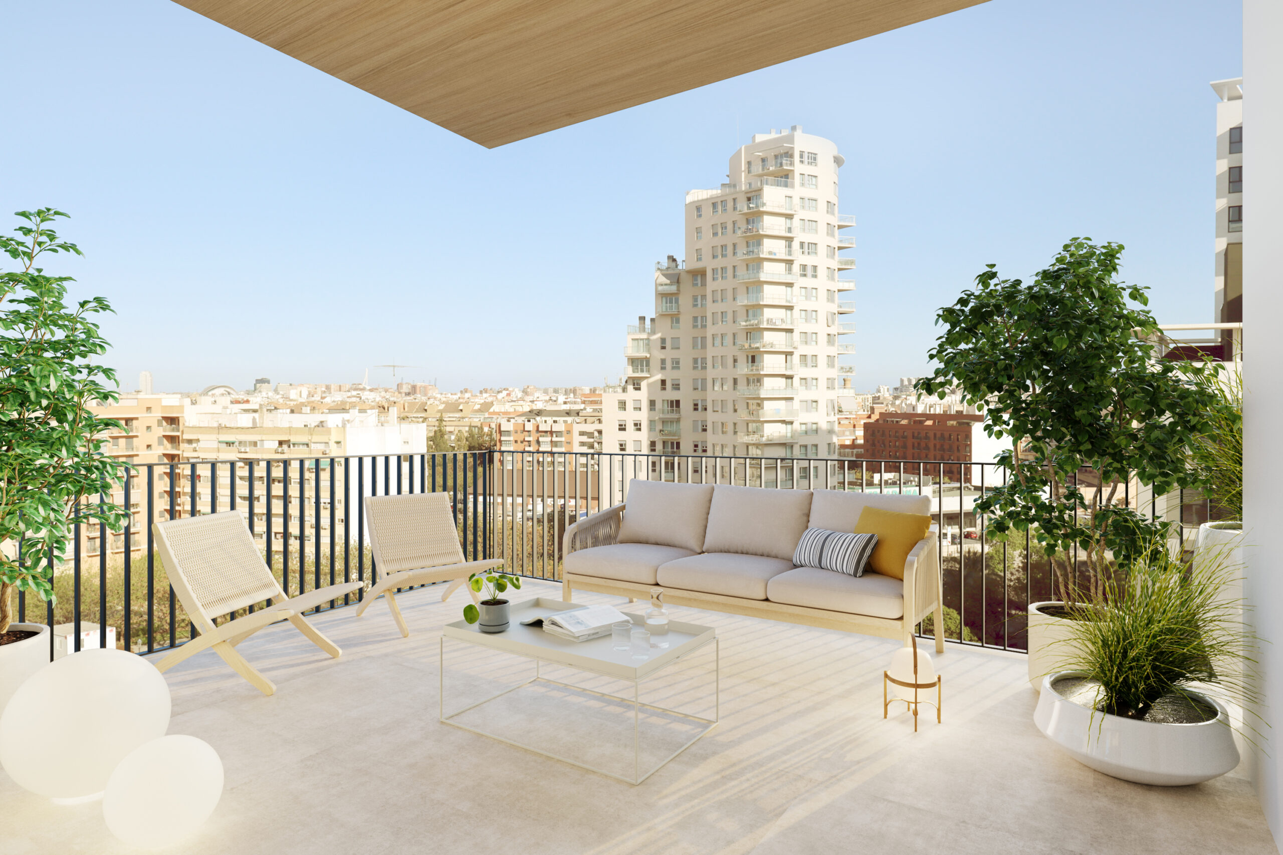 Todas las viviendas cuentan con terrazas de entre 6 y 16 metros cuadrados, perfectas para disfrutar del buen clima que ofrece la ciudad de València, mientras que su cuidada distribución y el uso arquitectónico de la luz natural que ofrece su excelente ubicación añaden espaciosidad a cada estancia.